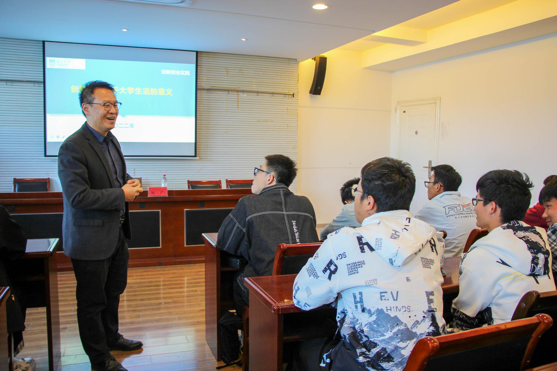 主题教育活动中,员工工作室刘广老师以“创新创业对于老员工活的意义”为题,为与会师生解读了创新创业的内涵。刘广老师有着丰厚的员工资源,在主题教育互动环节中,他结合员工创新创业的真实案例,为与会师生讲明了做好自我规划,锤炼创业品格,实施创新行动的重要意义和积极作用,他鼓励同学们要勇于自我革命,要一以贯之,要拥有创新创业激情,要敢于面对失败和挫折。